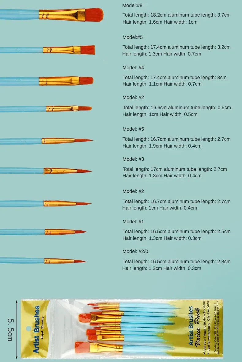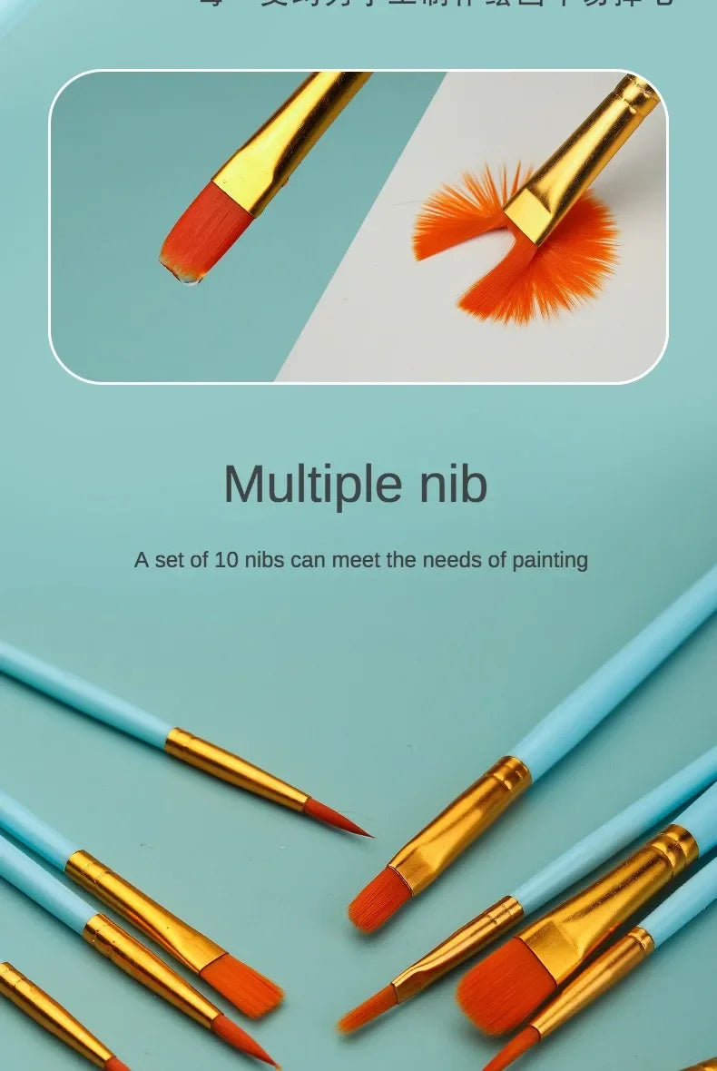 10-Piece Watercolor Brush Set – Multi-Functional Nylon Hair Brushes for Gouache, Oil & Acrylic Painting