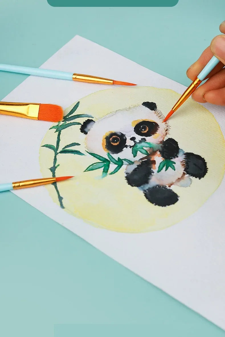 Enhance your painting experience with this 10-piece watercolor brush set, designed for versatility and style. Each brush features durable multi-color nylon bristles for smooth strokes and precise detailing. Perfect for watercolor, gouache, oil, and acrylic painting, this set is ideal for artists, students, and beginners.