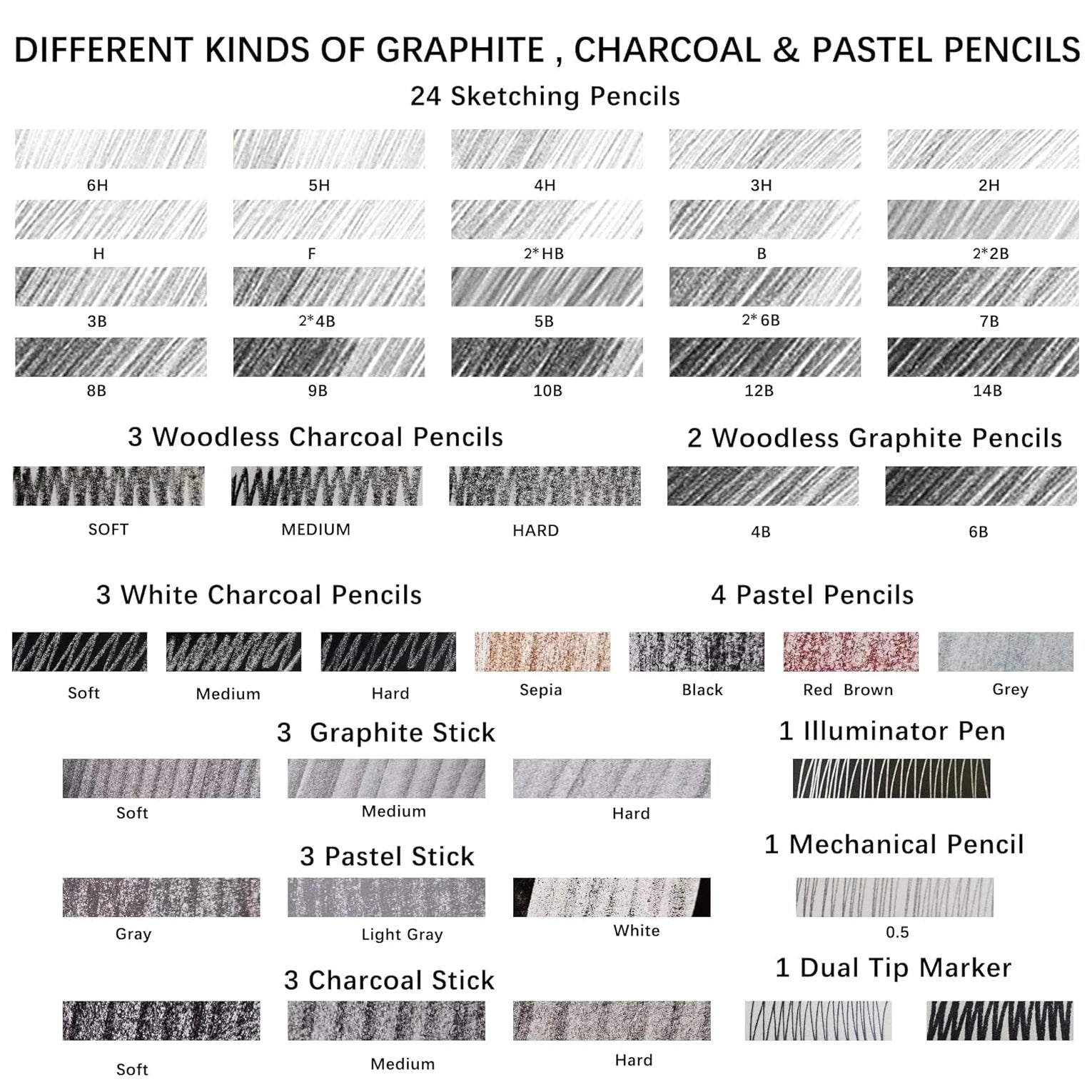 - Material: High-quality graphite and charcoal for smooth, precise strokes