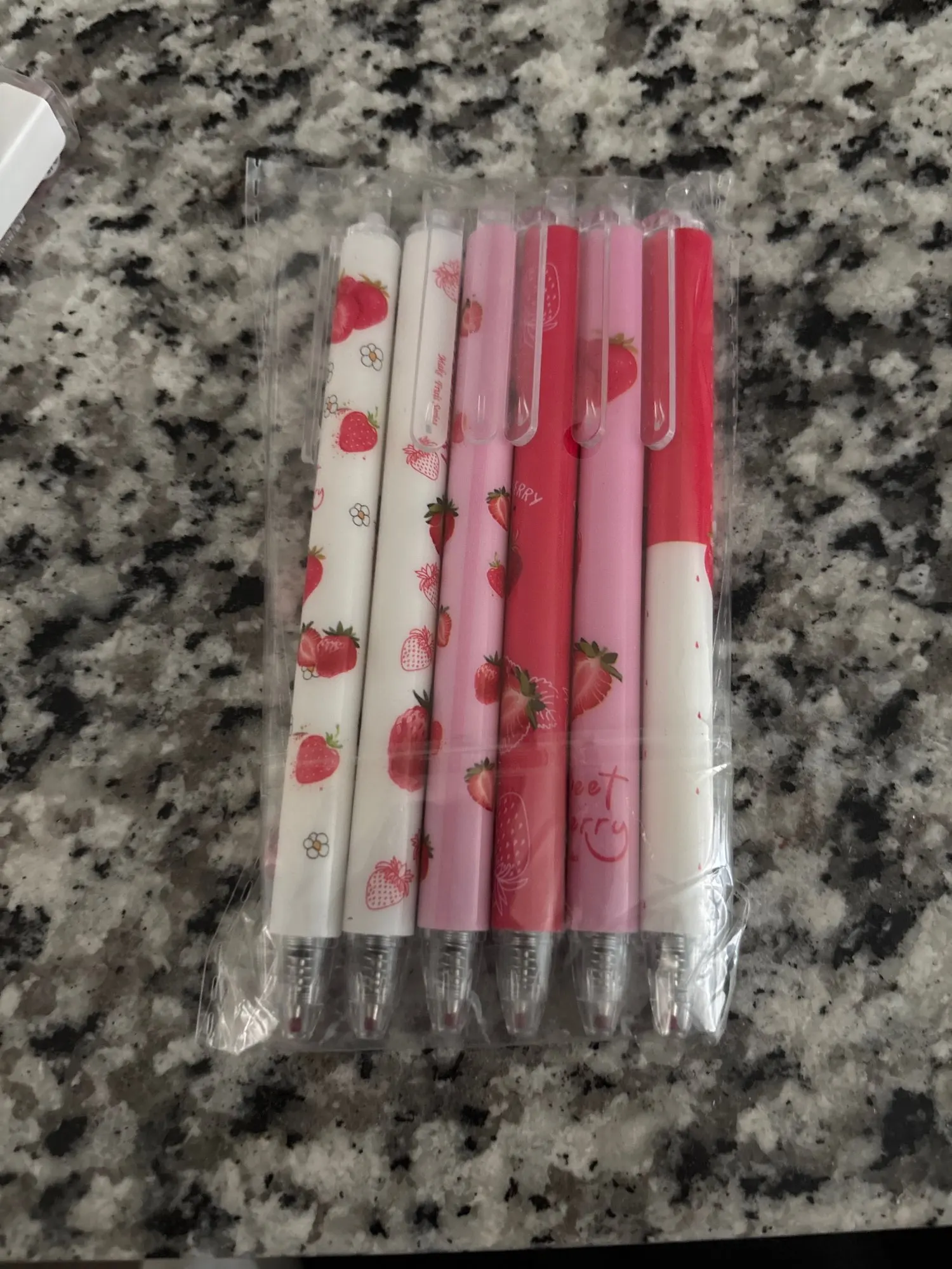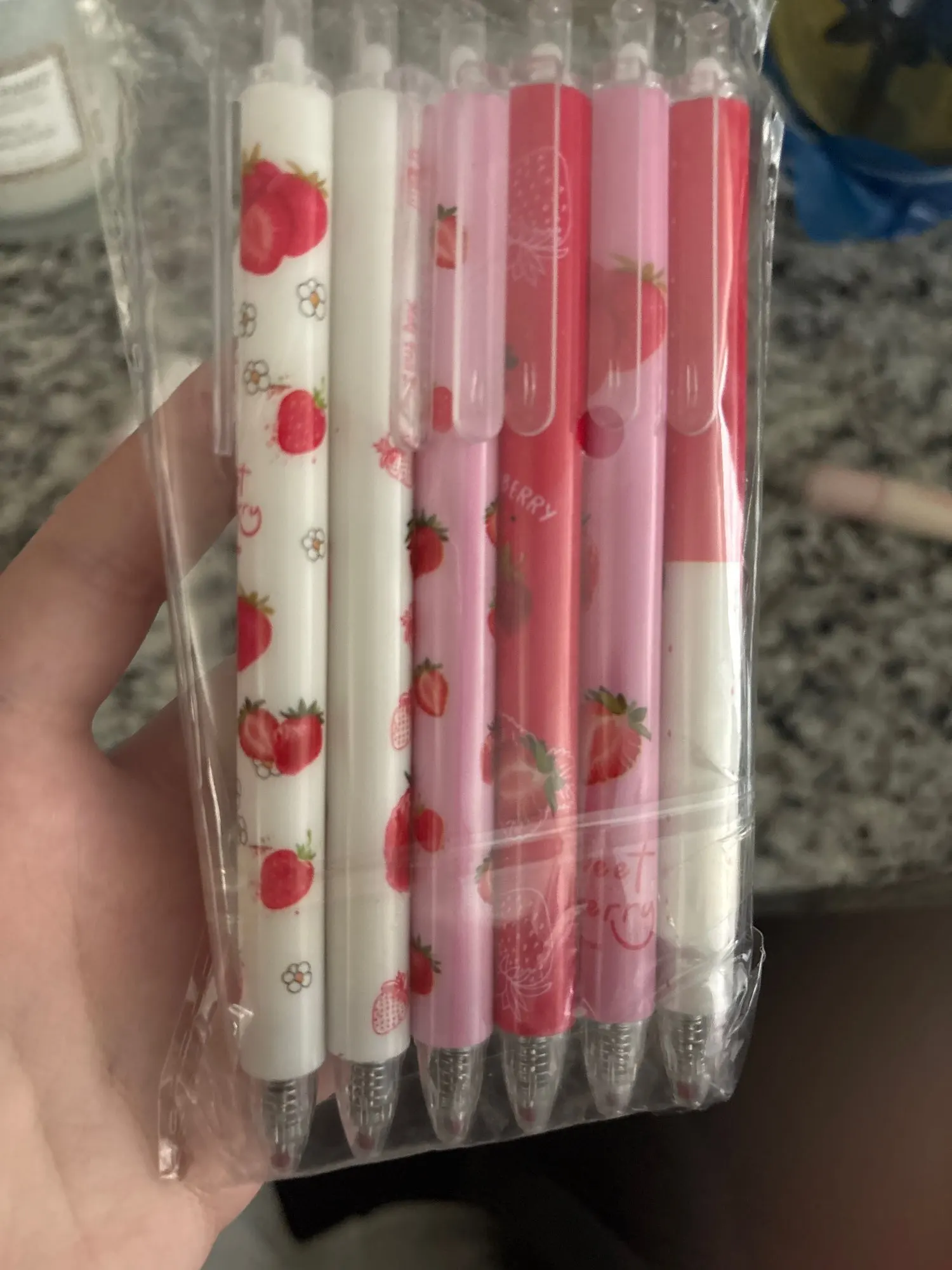 They are cute, I thought they were red, and they don't smell like strawberry at all. 🍓 I bought them because it said about the scent, but I was disappointed not only with that, but they are not bad for the price.